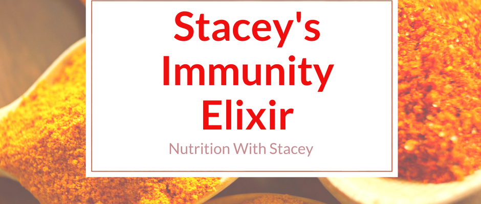 Stacey Dunn-Emke, MS, RDNNov 6, 20191 min read Immunity ElixirWhen I'm feeling vulnerable to a bug running around in my circles, I quickly concoct my Immunity Elixir. It's a nasty mix of apple cider...